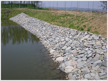 石籠網(wǎng)還可以用于引導(dǎo)河流中的水,該河流像河流一樣通常沿著固有的通道移動(dòng),并且可以具有自然彎曲的通道,如果產(chǎn)生大量的水,該自然彎曲的通道會(huì)產(chǎn)生大的、快速的流動(dòng)。 水流在慣性作用下傾向于直線移動(dòng),會(huì)猛烈沖擊原河道和堤壩,可能會(huì)使河道轉(zhuǎn)向,造成較大的阻力。